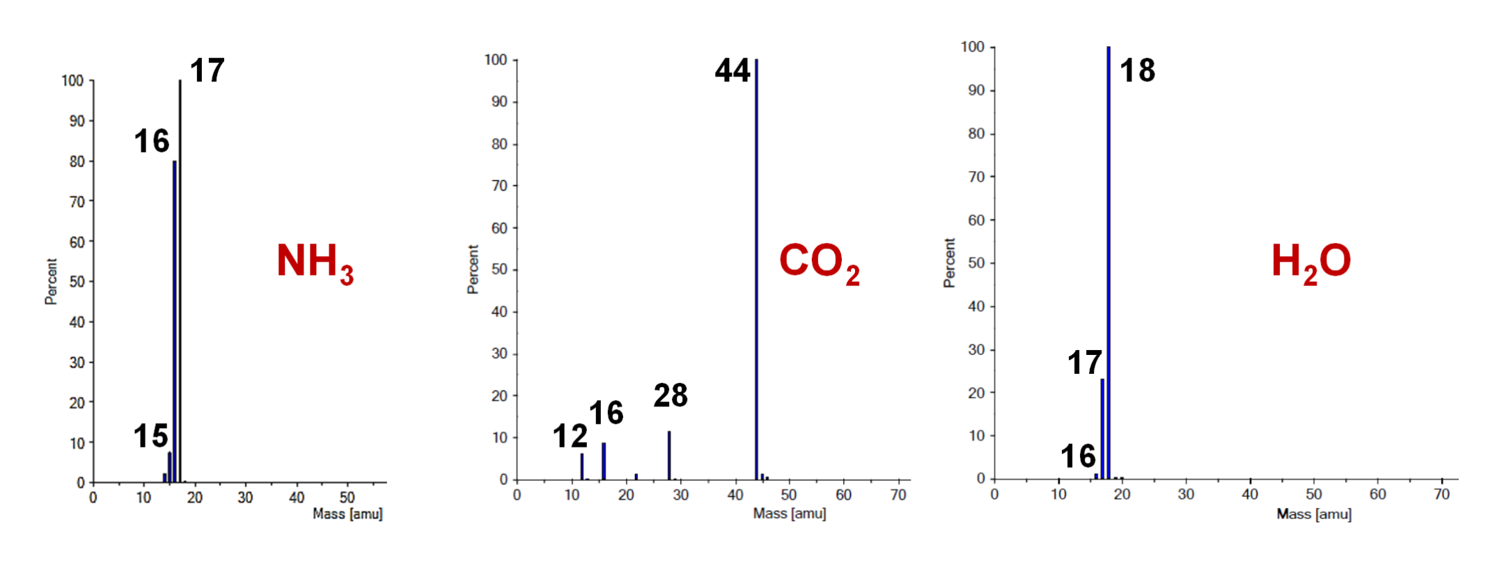 图5:氨气,二氧化碳和水的质谱图